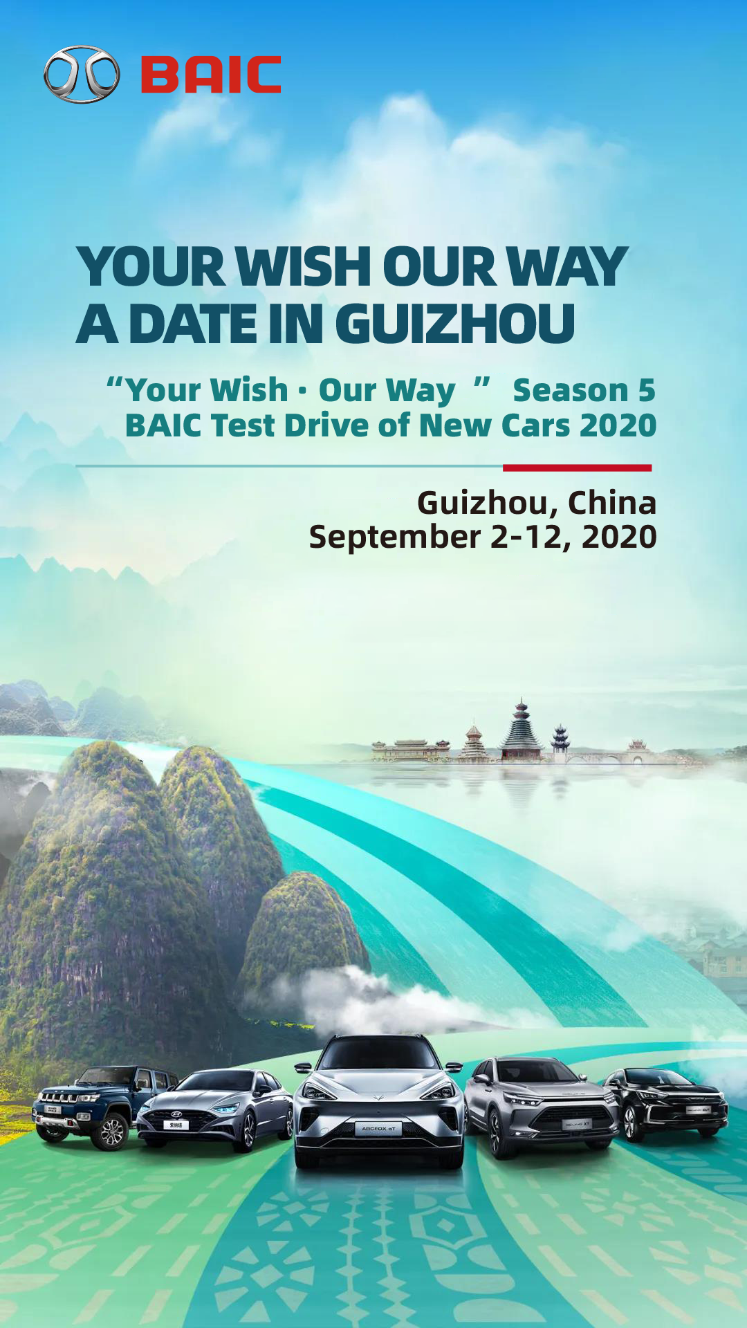 On September 2, 2020, “Your Wish · Our Way Season 5– BAIC Test Drive of New Cars 2020” was officially initiated in Guizhou. BAIC took six new models under four brands, i.e. ARCFOX, BEIJING Auto, Beijing Off-road and Beijing Hyundai, to Guizhou, and invited over 70 mainstream media at home to jointly witness the brand-new challenging trip.